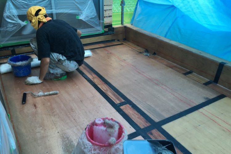 金曜日に現場監理へ行ってきました。 この日は高橋棟梁は棟上げの応援で現場を空けていましたが、左官工事担当の梶原組さんが作業に入られました。 新設した外壁に塗装下……