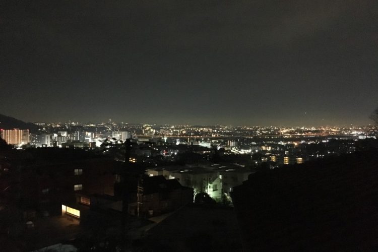 スカイハウスからの夜景です。 キレイですね(^_^) バルコニーに出るとこの眺望が広がっています。 バルコニーに出なくても、大きな開口部から見えます。 キレイ……