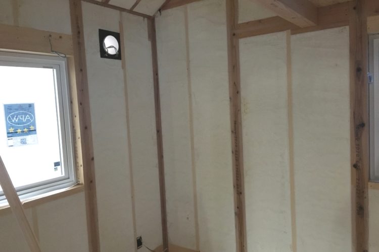 工藤住環境設計室の工藤です。 先日、宝塚市と川西市にまたがる敷地に建築中の宝川の平屋にて、屋根・外壁・内壁の一部に断熱材を施工致しました。 断熱材にはアイシネン……