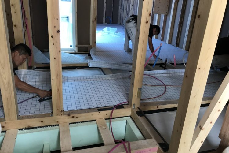 5月27日(土)は床断熱が施工されました。 仕様は下記の通りです。 ・施工箇所:床下 ・種類:セルロースファイバー デコスドライ工法 t105 ・施工業者:ハ……