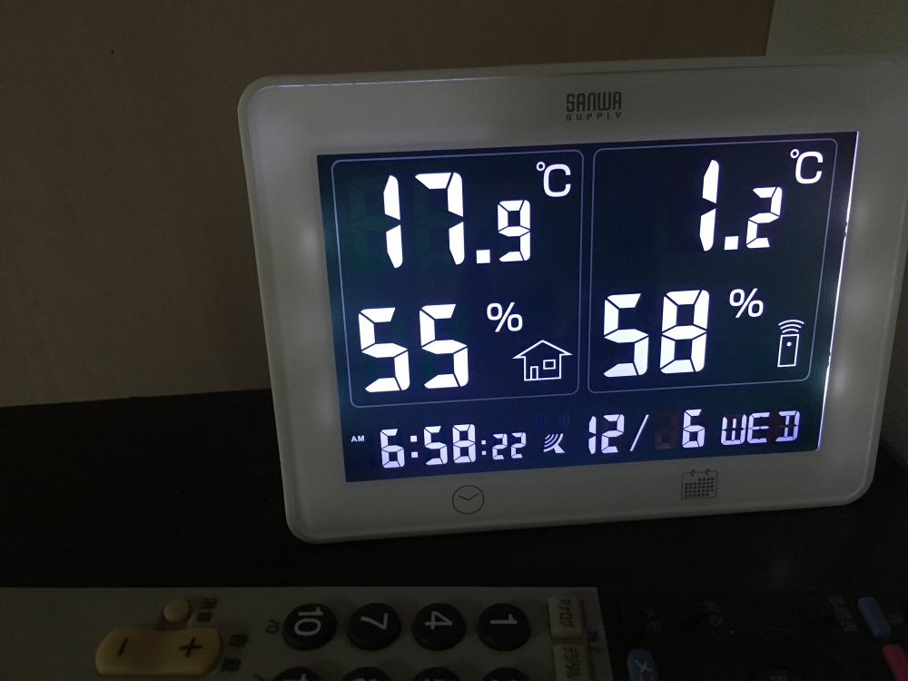 若干、肌寒いですが暖房しなくても過ごせる温度です。