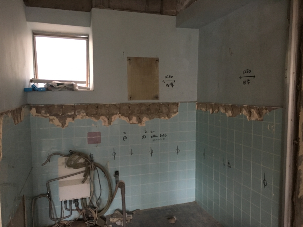 ユニットバスの打ち合わせも行い、仕込み配管の墨出しをして頂きました。