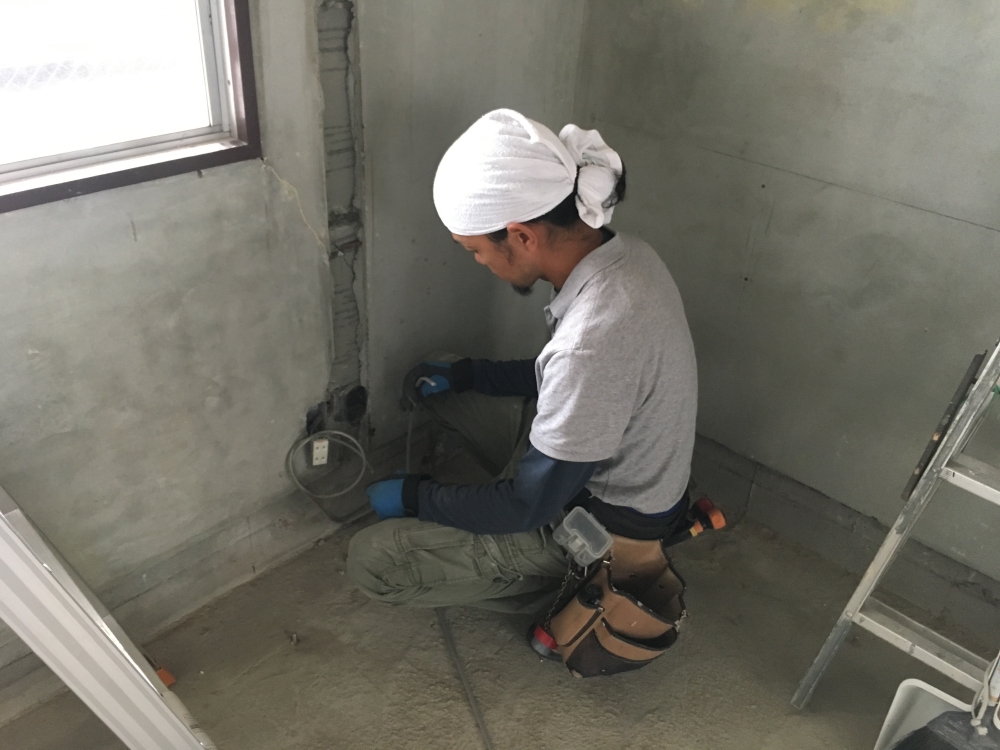 大工さんが床を施工する前に、床下配管・配線を先行工事致します。