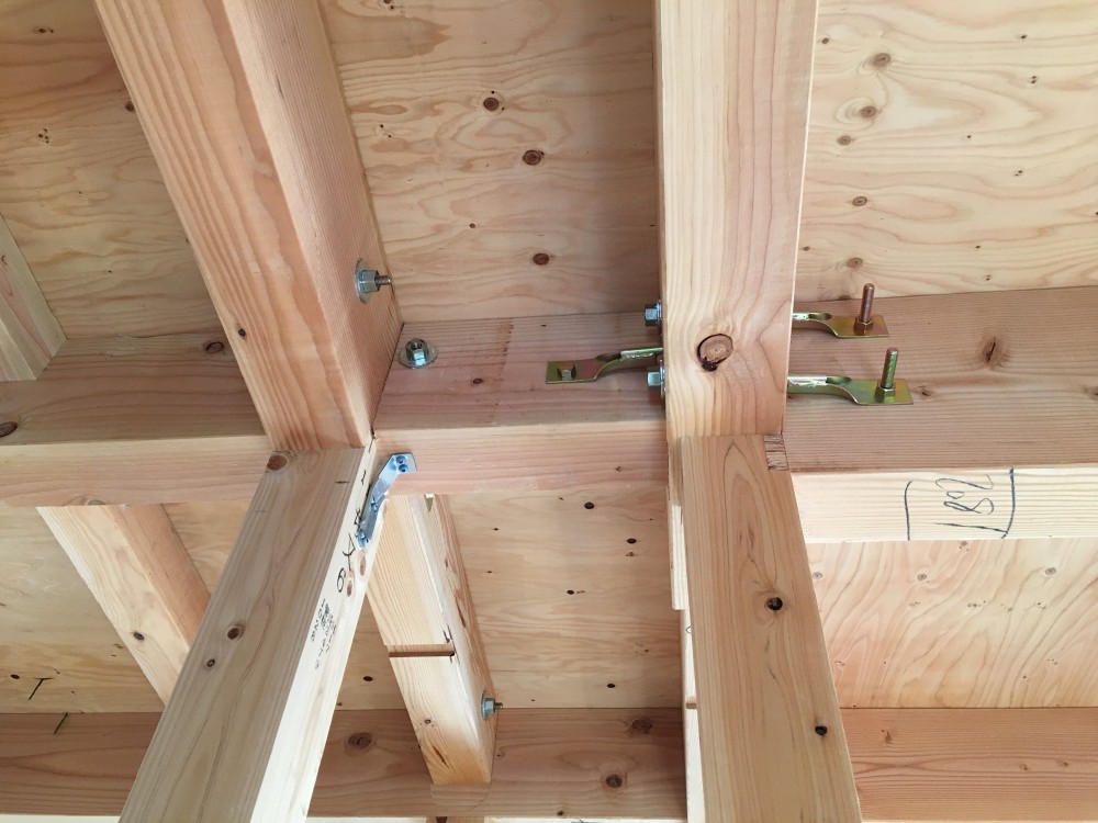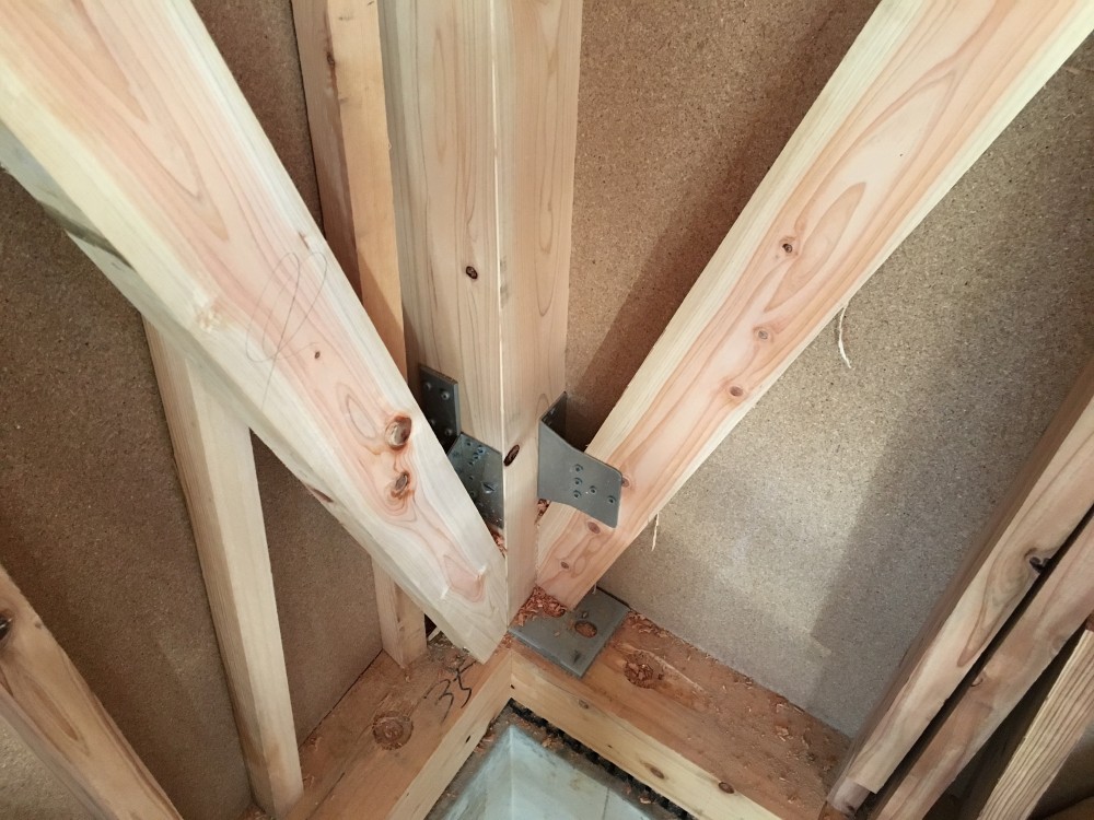 現場での検査は主に、柱・梁・筋かいや構造用金物等が図面通りに入っているかを確認します。