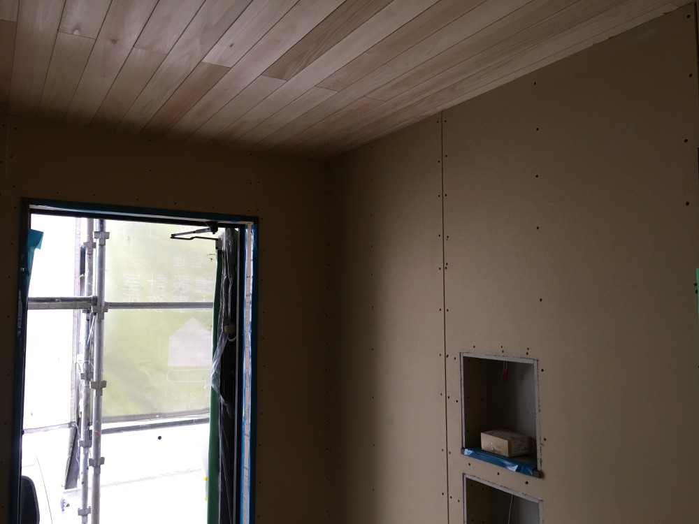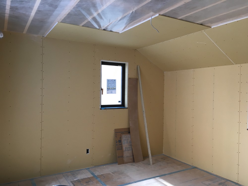 石膏ボードを張り始めました。