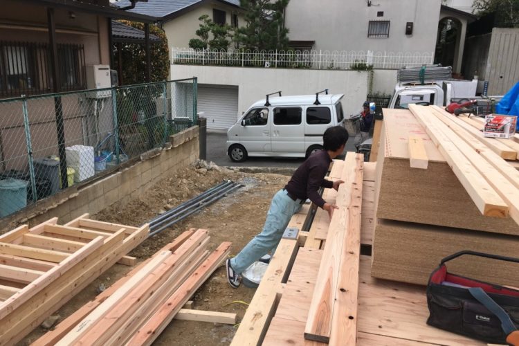 宝塚市調湿・気密共存住宅【大工工事:土台敷き・垂木等加工、仮設工事】