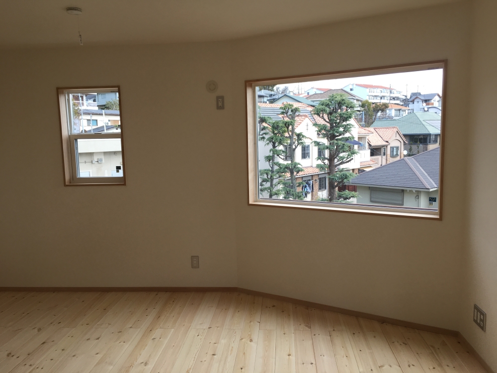 大開口のサッシや勾配天井など、温熱環境的にはマイナスの要因なのですが、設計の工夫・温熱計算・高性能断熱材(セルロースファイバー)・高性能樹脂サッシなどにより快適な空間となっております!