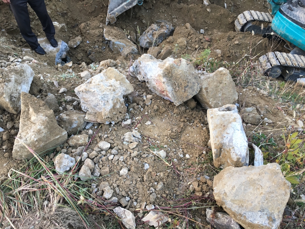 工事着工前に、ボーボーに生えた雑草を取り除く為、地面の表層部のすき取りを行ったのですが・・・。