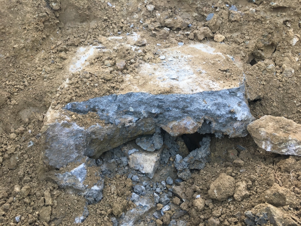 地中から従前の家のものと思われる、コンクリートガラがガッツリと出現しました・・・。