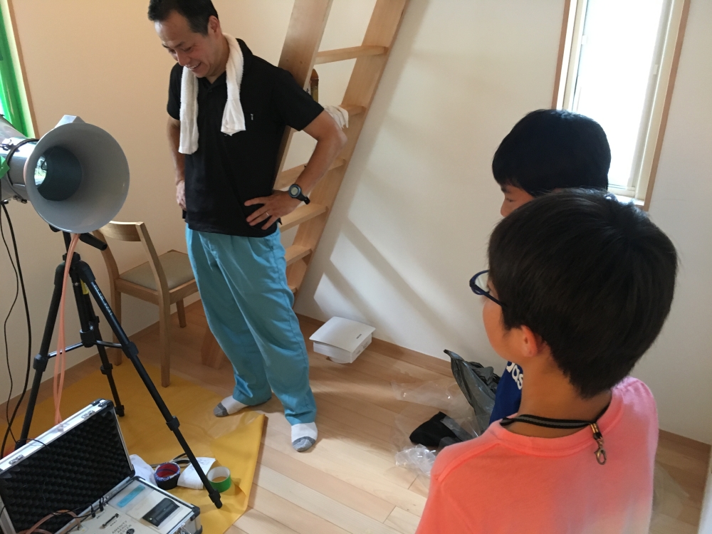 夏休み中の息子と息子の友だちが、社会見学する中、測定開始。