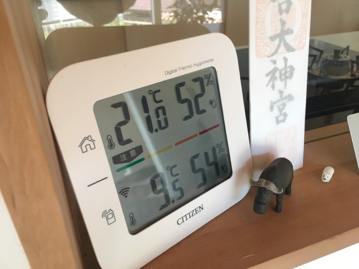 室内の温湿度は21℃・52%。