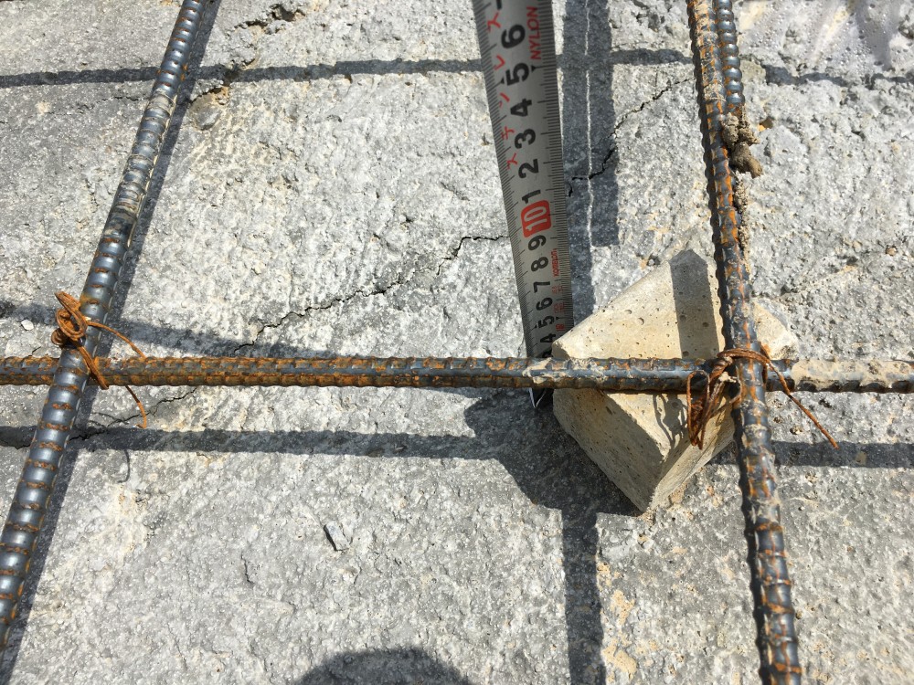 コンクリートのアルカリ性により鉄筋が錆びるのを防ぐ目的があるので、かぶり厚さは必ず確保しなければなりません。