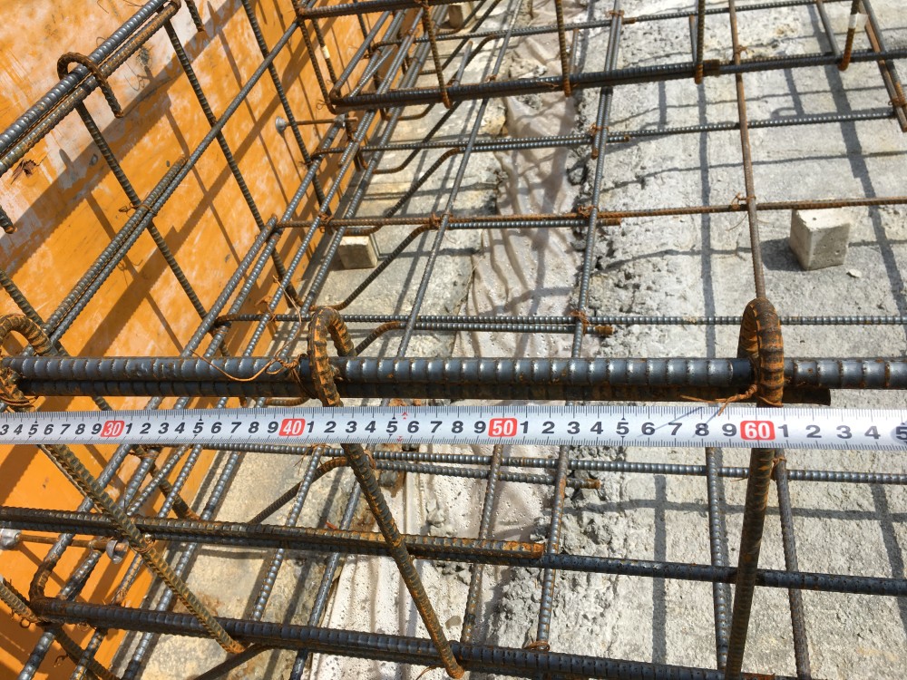 鉄筋の径、ピッチ、立上りの形状や開口補強が図面通りに施工されているかチェックしていきます。