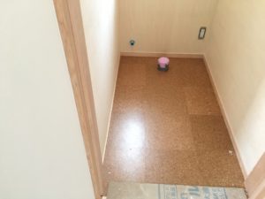 水廻り(キッチン・洗面脱衣室・WC)の床はトッパーコルクの防滑タイプを採用しました。