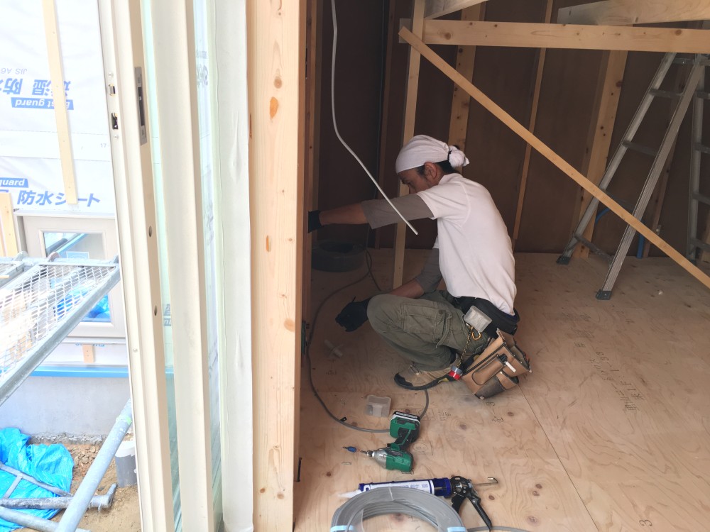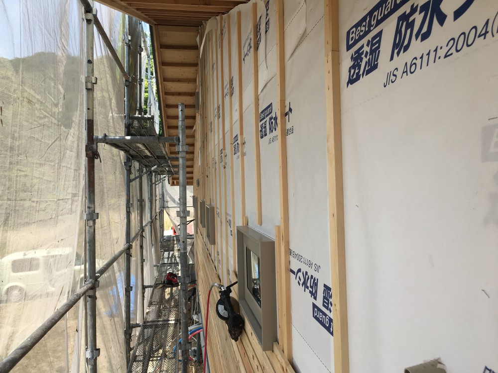 壁・屋根断熱施工前までに、外部の配線は逃げておきます。
