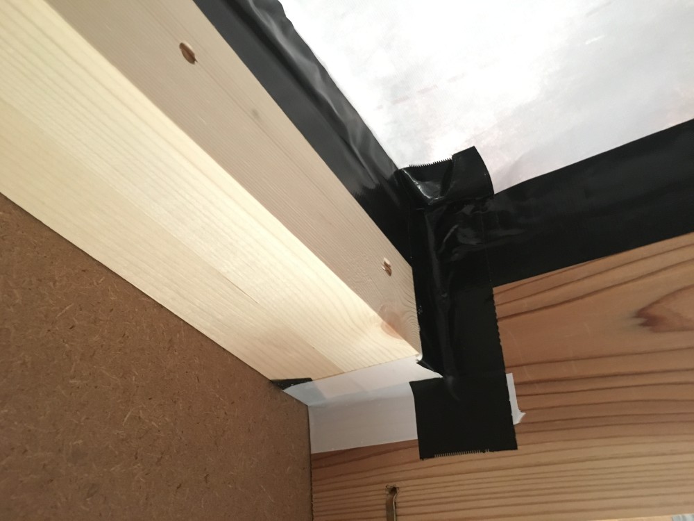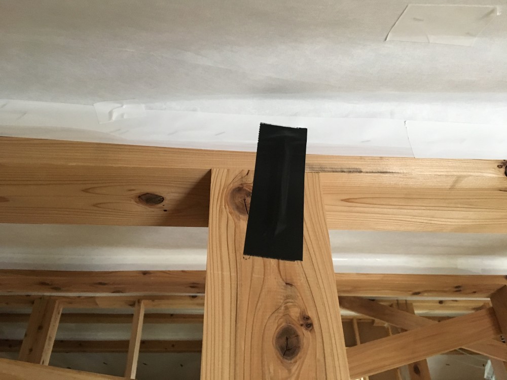 タッカー留めの上から気密テープをハウジングコアーさんに施工頂きました。