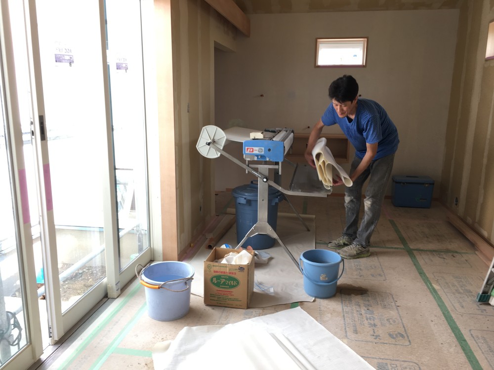 ビアロを塗る前に、専用の下地シートを施工していきます。
