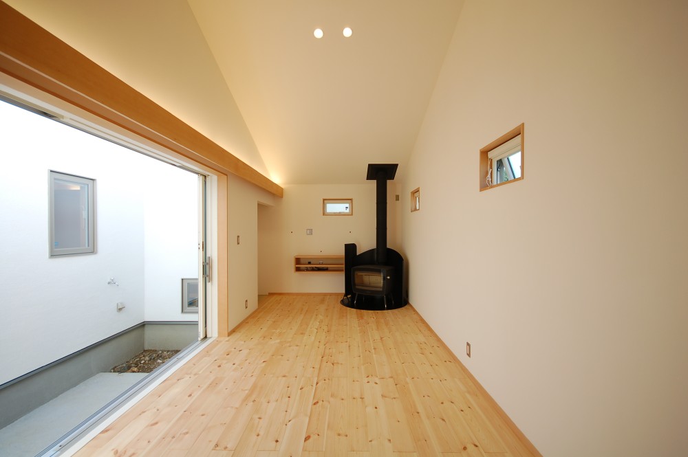 外壁は石灰モルタル仕上げ、屋根はガルバリウム鋼板です。