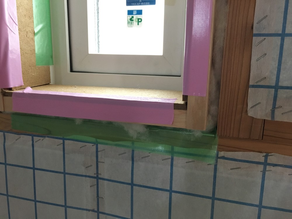 セルロースファイバーの調湿機能を損なわないために、室内側には防湿フィルムを貼っていないので本来は気密が取りづらいです。