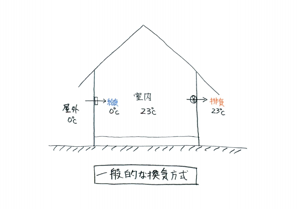 これでは折角暖房をし、温めた空気を換気により捨て、冷たい外気を取り込んでしまう為、寒くなり、また空調エネルギーのロスとなります。