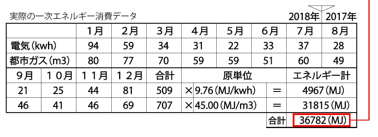 そして、実際の1次エネルギー使用量は・・・。