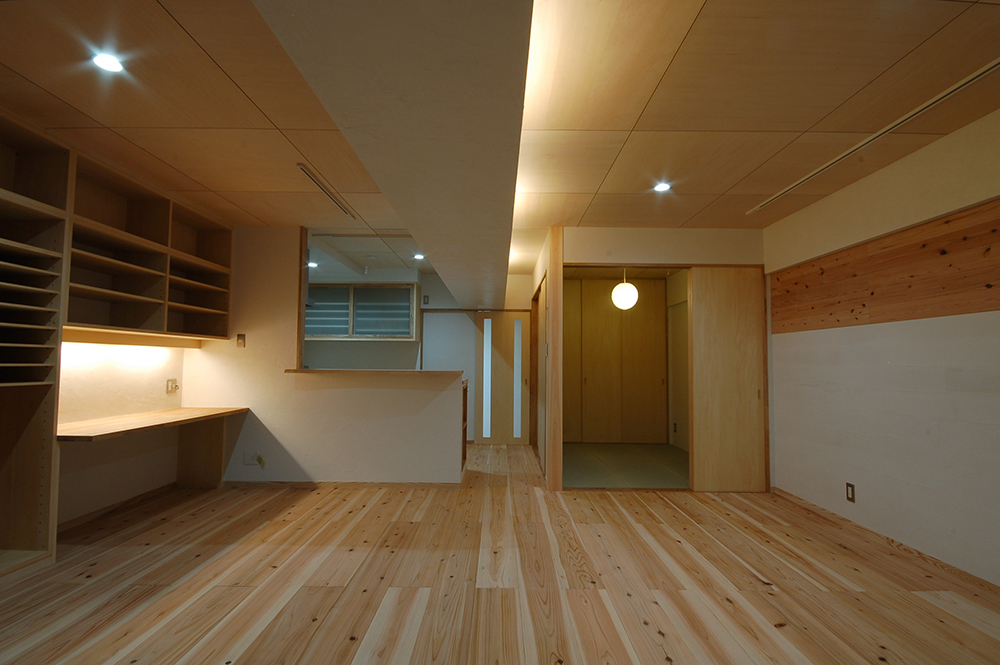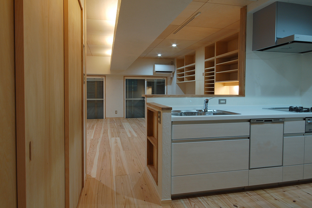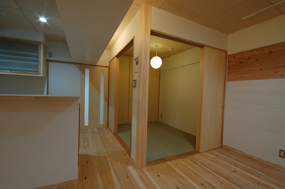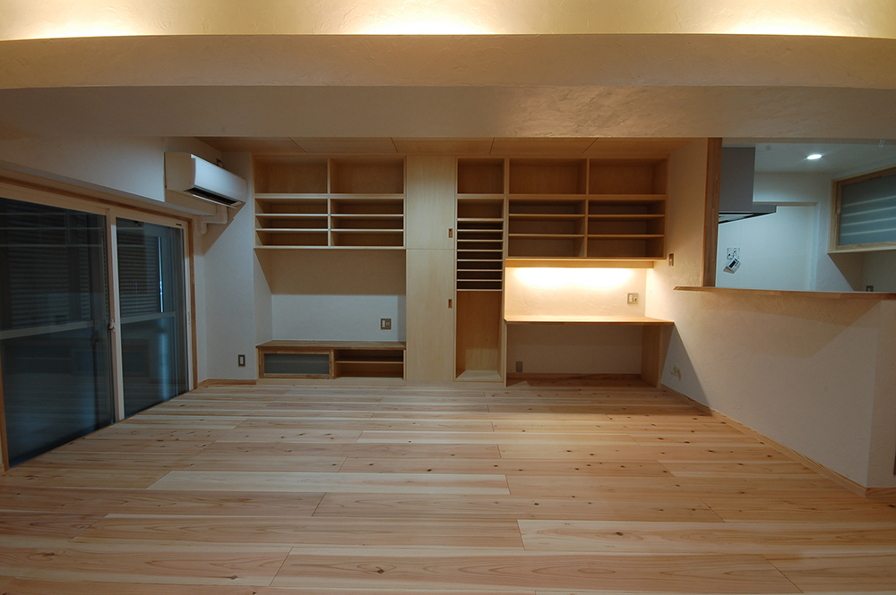 大阪府豊中市に建つ、築30年の鉄筋コンクリート造分譲マンションの1住戸を全面改修した計画です。 コンクリートの躯体(くたい)のみを残し、内装・下地・設備などを全て撤去し、改修を行いました。 この計画はCM分離発注方式(オープンシステム)を採用して改修工事を行いました。工事に関わりのある工種を約16工種に分割して発注・施主さまと契約を結びました。