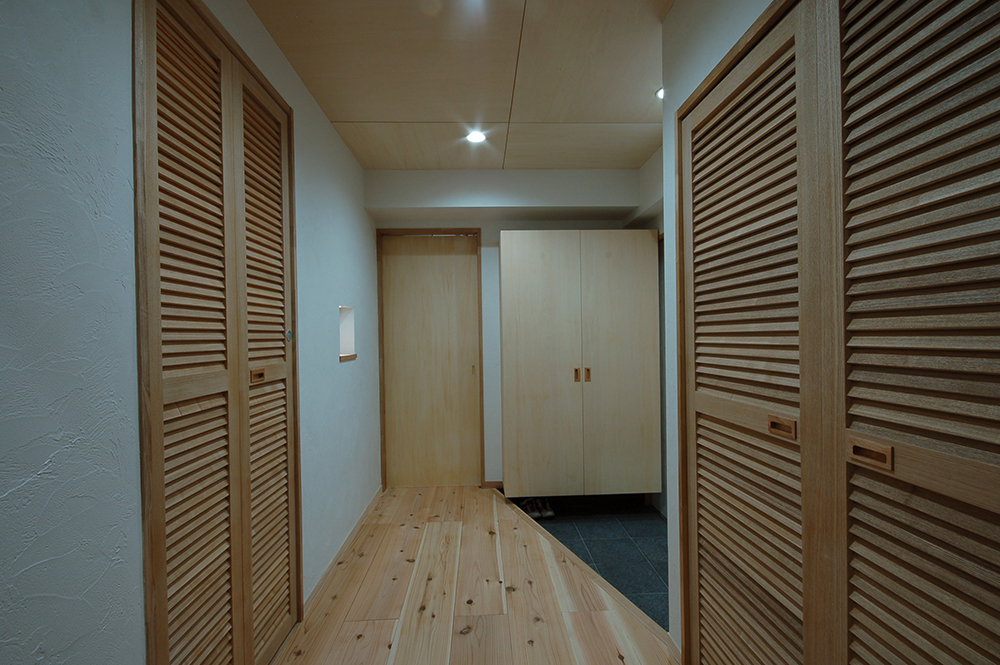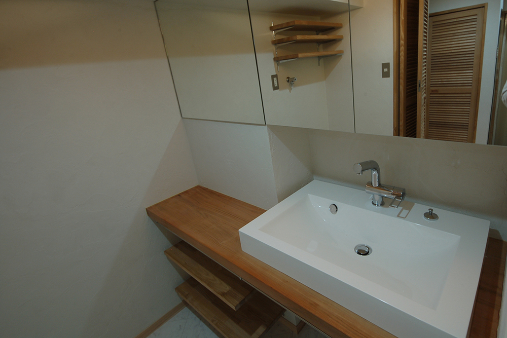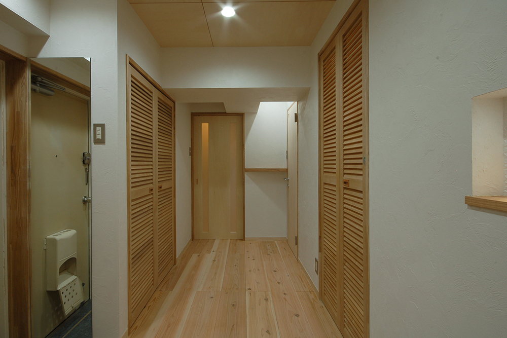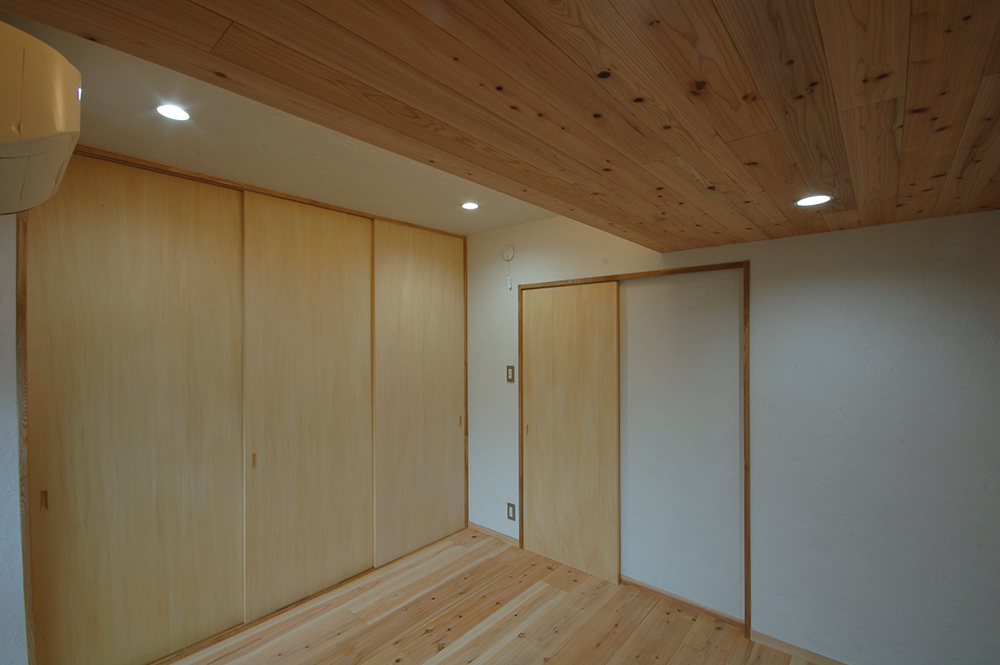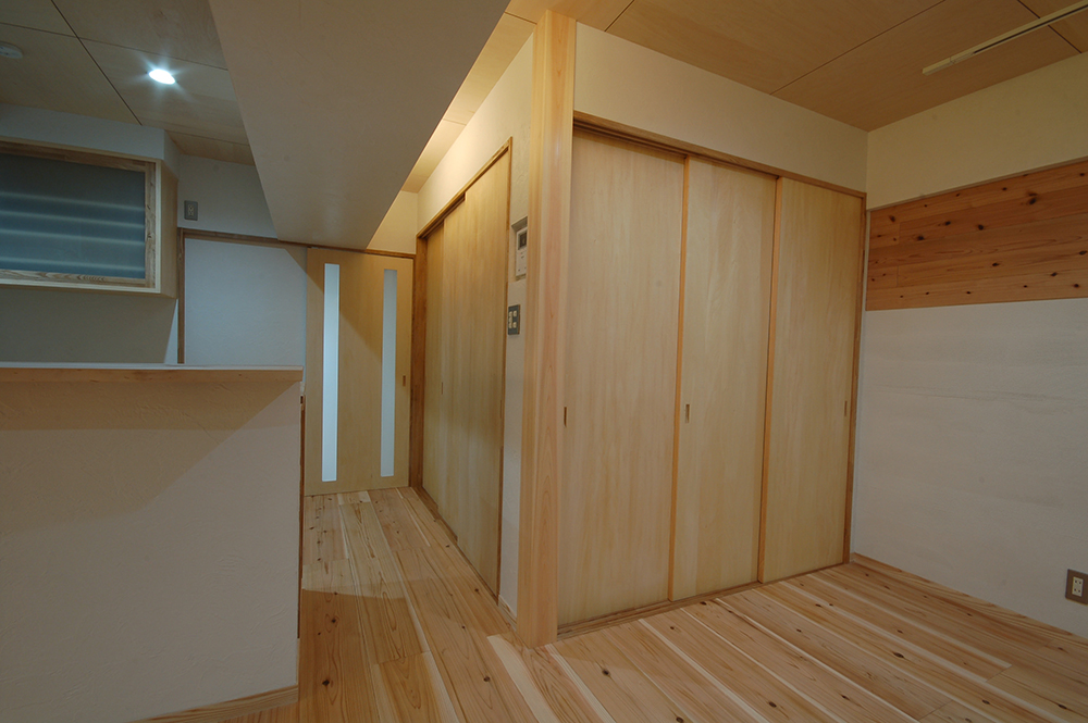 内装材にクロスを一切使用せず、漆喰と無垢の木のみの内装仕上げとし、『呼吸出来る家』だと考えています。