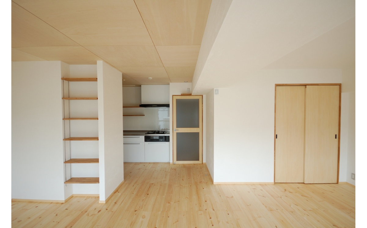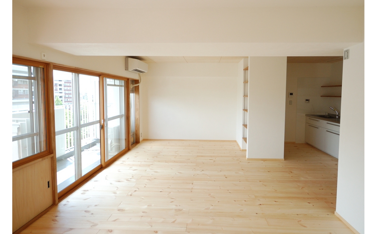 大阪府豊中市に建つ、築35年の鉄筋コンクリート造分譲マンションの1住戸を全面改修した計画です。
