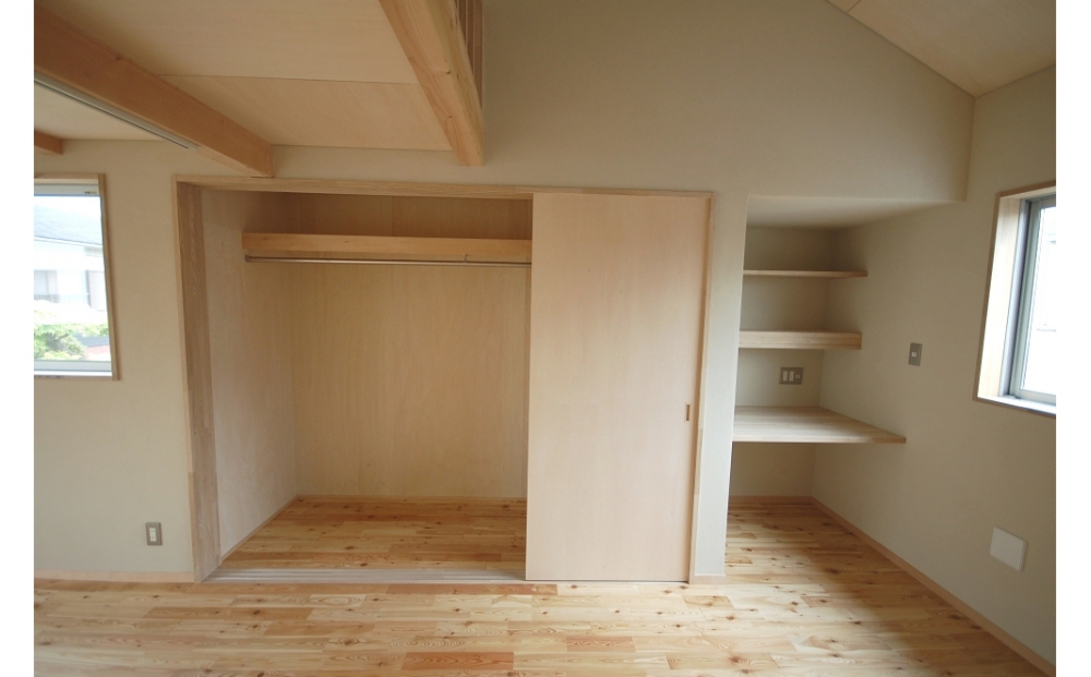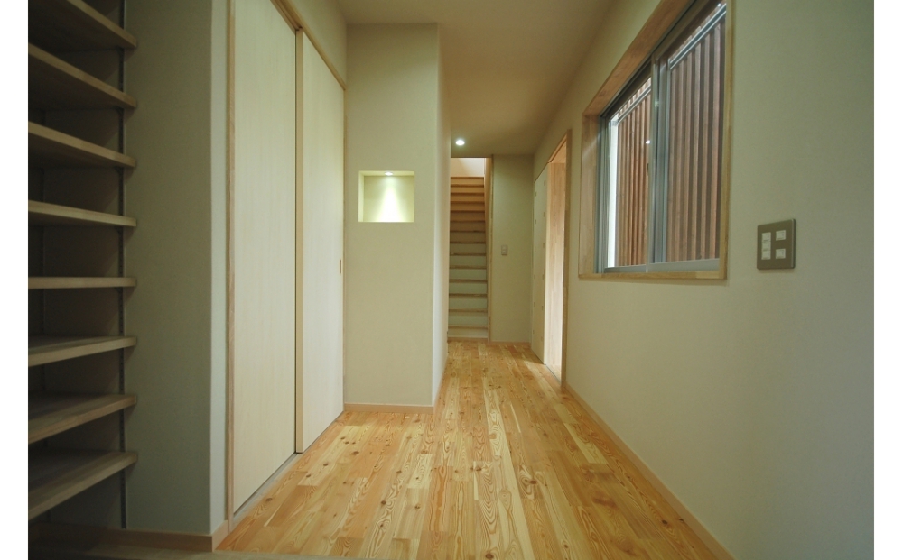 また、外壁通気工法を採用し透湿する内装仕上げを使い湿気のこもらない『呼吸する家』としました。