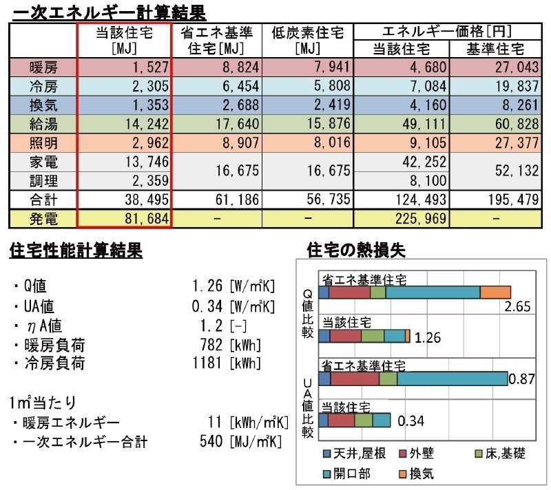 しかし、外壁充填断熱のみでもQ=1.26W/m2k(UA=0.34W/m2k)の高断熱住宅となっております。